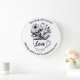 Snygg väggklocka med söt te kopp och blommor och ord kärlek i svart. Citat: "Tre sak varar för evigt - tro, hopp och kärlek - och det underbarare av dessa är kärlek." 1 Cor. 13.13 Underbar presentidé för ett nytt hem, en kristen vän eller en familjemedlem.