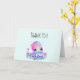 Tackkort med en bild av en söt feminin bläckfisk med en blomma på huvudet. Stora ljusa ögon och ett vänligt ansikte.