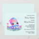 Babykalasinbjudan med en bild av en söt, flickaktig bläckfisk med en blomma på huvudet. Stora, ljusa ögon och ett vänligt ansikte.
