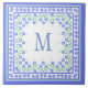 Ett mycket söt stort keramiskt plattor som du kan anpassa med ditt Monogram, med en gräns mönster av Blå periwinkle-blommor och Grönt bladverk. En del av "Periwinkle Patch"-samlingen "Posh and Painterly" gör det enkelt att anpassa mönster i gräns så att det passar vilken keramik som helst. (Lägg till ram i användan som trivet.)