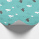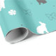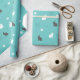 Elegant och söt design som föreställer vita kaniner och grått-kaniner, fjärilar och blommor i blå grönt.