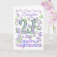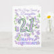 Ett mycket söt 21:a födelsedag för en mycket Speciell dotter, med siffrorna fyllda med mönster av blommor och skisserade i grönt och sprit av rosa, mauve och blå blommor. Ord, "Grattis på födelsedagen!", är också i samma skuggor som blommorna, som har målats för hand i vattenfärger.
