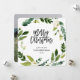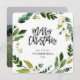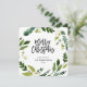 Prisvärda helgdag-fotokort med utskrivna anpassningsbar med enkla mallar för anpassning. Den här roligten har en enkel vattenfärgad blommigt med krans av grönblommor och vita blommor på vit bakgrund. Texten läser "God jul" i ett handskrivet penselskript. Anpassa den till din familj namn, året eller annan anpassningsbar. Omvänd sida har plats för fotot eller ytterligare text. Använda verktygen för att redigera texten, lägga till fler foton och skapa ett unikt grafikkort med ett slags fyrkantigt julkort.