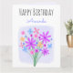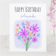 En söt färgad bukett av handdragna söta blommor på en lavender-/violett- och vit palett i färg. Klicka på knappen Pesonalize om du vill lägga till ett namn på framsidan och ett födelsedagsmeddelande osv. på insidan. Du kan anpassa ytterligare genom att klicka på länken 'Klicka för att anpassa ytterligare' i grund i rutan Anpassa och använda verktygen för att flytta meddelanderutan osv. om det behövs.