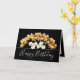 En underbar bukett av orkidéer av gult och vita liljeblommor mot svart bakgrund av färg. Hälsning-födelsedagstexten användor ett attraktivt typsnitt för skript. Blommorna täcker framsidan av detta kort som kan användas som ett tackkort, ett födelsedagskort eller något annat kort som du väljer. Anpassa den med din text och/eller bilder för att göra den till en sorts!