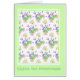 Ett mycket söt födelsedagskort med hälsning på danska och mönster i rosa ros, gräddvit Mock Orange och lila Lavender på vit bakgrund med en blek grönt gräns, från en handmålad vattenfärgsdesign av Judy Adamson. Insidan lämnas tom för ditt eget meddelande.