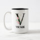 Söt Blommigt V monogrammat alfabet Två-Tonad Mugg