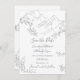 Detta bergsområde Save the Date bröllop-meddelandet har en enkel linje teckning av berg, grenar och blommor. Det görs i grått, vitt och mjukt lilaxampersand. ^