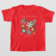 Jul-t-shirt i stil med vår moderna festliga jul blomster semester t-shirt. Den har vackra handmålade blommor i ett traditionellt klassiskt rött och grönt färgschema. Personalisera t-shirten genom att lägga till ditt anpassade namn personliga detaljer. Bakgrunden har en röd färg. Originalkonst av Caroline Bonne Müller