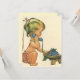 Vintage illustration barn och bebisar bild med en söt ung blond tjej med hästsvansar som pratar i sin första telefon. Ring alla dina vänner och berätta den goda nyheten!