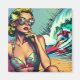 Söt Blonde Retro Woman och Surfer Guy Magnet