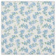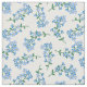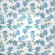 Shabby chic blommigt med mönster av glöm mig inte blommor i blått mot en vit bakgrund.