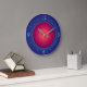 En söt rund väggklocka i blått med en ro-röd virvelcentral. Fyll med ljusblå siffror. Finns i kvadratiska och runda former.