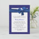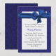 Söt inbjudningskort för möhippan har gjorts i ett blått fuktmönster med ett vitt på vitt fuktområde. Bilder av en söt som blå buggar dekorerar inbjudningens överkant. Text i mörk grått och blått är helt anpassade till kostym som du behöver. En trevlig inbjudan till bruden att vara.
