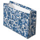 Söt blommönster med blå bohemiska blommor på vit bakgrund.