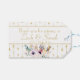 Den vackra vattenfärgsillustrationen Boho har blommor och fjädrar på vitt med guld-pilarnas bakgrund. Anpassa med bröllop-parets detaljer