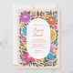Den här vackra inbjudan till Påsk Brunch innehåller en hand plockade-blommigt i magenta/fuchsia-rosa, orange, gyllene gult, lila, blått och grönt över anpassningsbarnas färg (visas i ljuspersika). Med ett ovalt format ram kan matchande orange framträda. *Artwork skapat uteslutande av Orabella Prints