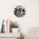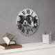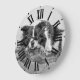 Denna Söta Border Collie Hund Stora Klocka har en fantastisk svart-vit bild på en söt border collie hund som ligger på en trädstam. Ett perfekt tillägg till hemmet för alla hundälskare där ute. Bild exklusiv för Zazzle och kan inte hittas någon annanstans!. Dafydd's Designs.