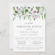 Vattenfärgsarrangemang i blommigt med vita nyans, mauve och grönt, repetitionsmiddagsinbjudan. Chic och modern typografi. Kortets baksida har en solid mauve färg.