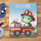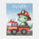 Personlig brandman Dino-hjälte! babyfilt! Föreställ dig en älsklig dinosauriehjälte på ett dynamiskt brandfordon, redo att rädda dagen. Denna fängslande design blandar söthet med action, perfekt för att tända fantasifull lek hos blivande brandmän.