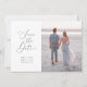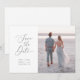 En elegant, klassisk spara-till-datum - med ett skriptteckensnitt och ett enda foto. Det går att lägga till ytterligare foton och text i anpassadets baksida.
