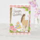 Söt Brown Horse and Rosa Flowers Grattis på födels Kort