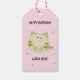 Söt brun katt rosa mönster glad födelsedag presentetikett