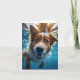 Söt brun och vit hund som simmar i klart blått vatten.