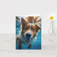 Söt brun och vit hund under vattnet simmar tom kort