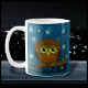 Söt, fluffig brun uggla som önskar er alla god natt och söta drömmar. En natthimmel full av lysande stjärnor är bakgrunden till denna söta nattuggla som sitter på en gren. Med anpassningsbar text skulle detta vara den perfekta presenten för någons sängvätet kaffe.