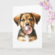 Söt akvarellkonst av en brun valp som blåser tuggummibubblor på detta tomma vykort.