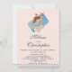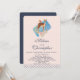 En söt brun hjort med en vit fläckig rygg. En liten fågel som sitter på hjortens rygg. En fin blomsterbukett i pastellrosa och grönt. En blå rektangel bakom bilden. En prickig kant längst ner. Osculdig och söt design. Personifiera med din bröllopsinformation.