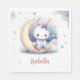 Toppen söt napkin med en söt, vit, liten bunny med en vacker rosa sitta på en underbar måne med några guld fallande stjärnor.