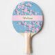 Söt söt körsbärsfärs blommar grenar på blå glitter-bakgrund. Anpassa pingpaddeln med namn!