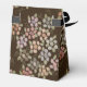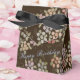 Söt liten blomstrad tält stil-textruta, anpassa grått-blå text eller så går det inte att ta bort text. Perfekt för party, bröllop gäster, födelsedagsfester eller företagsevenemang. Choklad brun bakgrund som kan bytas till ditt eget färg-val med mjuk pastellblomma i färgaden. Designer party favors med ditt eget personliga meddelande.
