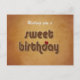 En chokladfödelsedag hälsning med en röd båge på en grym bakgrund.