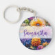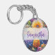 Personligens nyckelring. Söt blommor i orange, lila, blått och gult med grönt bladverk. Söt ai art.