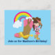 Söt cowgirl-födelsedagskort inbjudan med en liten flicka klädd i rosa lutad mot en cowboy-stövel och vippar på hatten. Regnbågen mot den blå himlen bakgrunden ger en fin touch till denna coola anpassade rodeo-fest inbjudan.