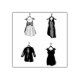 Rubber frimärke har en rad originalillustrationer av söt klänningar på hängare.
