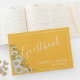 Söt personligt bröllp guestbook-designen har vattenfärgsvit daisy i hörnet på daffodil gult med vit anpassade i modernt typsnitt