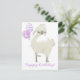 NyParkLane - Söt födelsedagskort för barn, med en söt lycklig dansande lama med rosa, lila och lavendelballonger i akvarell. Lägg bara till ditt barns namn efter "Grattis på födelsedagen" för en personlig design, och lägg till ett personligt meddelande på baksidan.