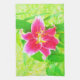 Söt Deep Rosa Stargazer Lily on Lime Green Kökshandduk