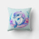 En kudde med en förtjusande illustration. En blå och lila delfin omgiven av snygga färgglada undervattensväxter.