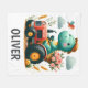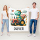 Söt dinosaurie på röd traktor fleecefilt
