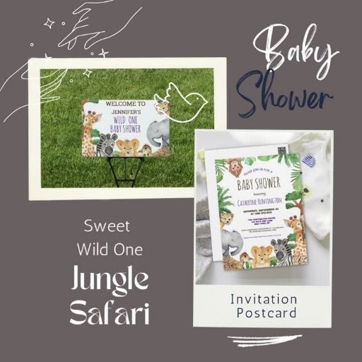 Bjud in vänner och familj för att fira din baby shower med detta söta och charmiga postkort för baby shower med djur från djungelns safari. Denna design har söta afrikanska djur som elefant, zebra, giraff, apa och ett lejon omgivna av botaniska blad. Anpassa den stiliga texten med det typsnitt och den färg du väljer eller lämna denna populära typografi för din bekvämlighet. Andra färger och stilar finns tillgängliga. Kontakta oss så hjälper vi dig gärna att göra din fest perfekt!