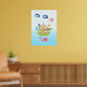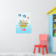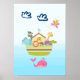 En affisch med en söt barnkammareillustration av en ark fylld med vilda djur och en fjäril som flyger ovanför och en vänlig val som sprutar vatten nedanför. Några blå moln flyter förbi. Satt på en ljusblå ombrebakgrund.