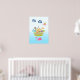 En affisch med en söt illustrationsstil för barnkammaren av en ark fylld med vilda djur och en fjäril som flyger ovanför och en vänlig val som sprutar vatten nedanför. Några blå moln flyter förbi. Satt på en ljusblå ombre-bakgrund.
