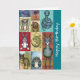 Ett lyckligt födelsedagsgratulationskort med en unik och färgrik samling djur i folkkonststil i en collagedesign. En mängd olika djur finns i denna kreativa konstnärliga design, som inkluderar en kobra, lejon, hund, ödla, struts, zebra, kanin, gecko, åsna och uggla. Denna design har en unik stil med en gammaldags och underlig sorts flärd. Jag gillar det! Födelsedagsmeddelande på insidan som kan anpassas eller lämnas som det är.