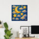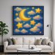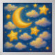 En fantasifull pastellmålning av en natthimmel. En rörande bild av en halvmåne omgiven av leende stjärnor och mjuka, lysande moln. De lugnande nyanserna i midnattsblått, gyllene gult och lavendel skapar en mysig, sagobokslik känsla. Varje stjärna lyser med en touch av värme och personlighet, förvandlar natthimlen till en fridfull samling av sömniga vänner. Detta konstverk inger en känsla av tröst, oskuld och förundran. Denna tavla är idealisk för barnkammare, barnrum eller någon som älskar fantasifull himmelskt konst. Häng den ovanför en barnkammare eller byttlåda för att skapa en mjuk, engagerande fokuspunkt. Detta konstverk gör också en underbar och
