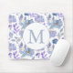 Dusty Blue och Lilac Watercolor Flowers Mönster Monogram Mouse Pad